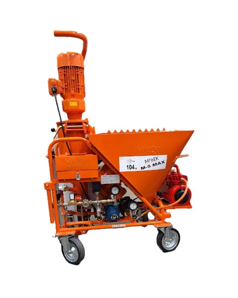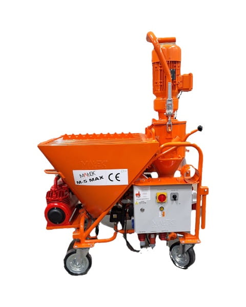 Agregat tynkarski M-5 MAX 400V jest przeznaczony do podawania mechanicznego zapraw o uziarnieniu do 3 mm (przystosowanych do podawania mechanicznego według zaleceń producentów) takich jak: